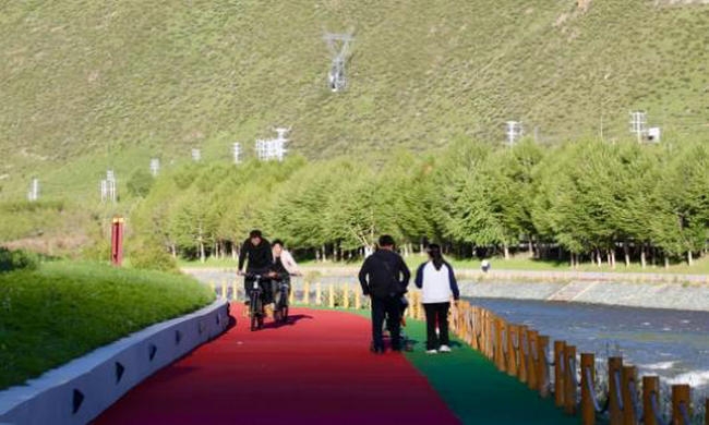 站在扎曲河畔远眺,湛蓝的天空下,绿树与藏式民居相映成趣,晨练的市民、巡逻的管护员、嬉戏的孩子,构成一幅人与自然和谐共生的画卷。