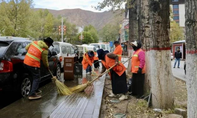 凌晨三点的玉树,夜色未褪、寒风凛冽,环卫工人已身着工装踏上街头。按照“分区负责、定岗定责”要求,他们分散在各条路段,扫帚与地面的摩擦声打破静谧,落叶、杂物被逐一清理,就连石缝里的细小纸屑也不放过。“多扫一寸,城市就干净一分。”无人言说的信念里,一条条整洁街道在晨光微露时渐次舒展。