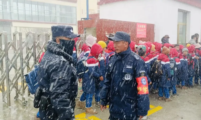 近日,辖区内普降阵雪,路面湿滑、能见度降低,给中小学生上下学带来较大安全隐患。为切实保障辖区师生出行安全,玉树市公安局巴塘派出所提前部署、主动作为,在风雪天气持续坚守护学岗,用坚守筑牢校园安全防线。