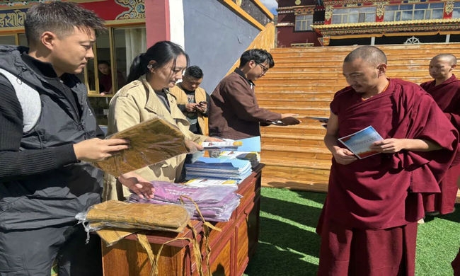 玉树市司法局安冲司法所联合安冲乡政府深入达杰寺开展国庆节前专题普法宣传活动。活动现场通过悬挂宣传横幅、发放藏汉双语宣传资料、现场普法讲解等形式,工作人员采用通俗易懂的双语形式向僧众和信教群众讲解公民权利义务、民族团结等法律知识,结合典型案例现场解答僧众提出的法律疑问,并向现场僧俗群众发放《宪法读本》《民法典与生活》《宗教事务条例解读》等普法读物240余册、法治主题生活用品80余份。