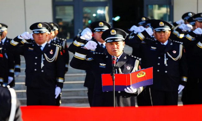 在副市长、市公安局党委书记、局长洛吾扎巴的领誓下,全体民辅警高举右拳,对着警旗重温了公安机关人民警察誓词。“我是中国人民警察,我宣誓:坚决拥护中国共产党的绝对领导......”声声入耳,响彻全场,激励全体民辅警把满腔的爱国之情转化为工作的动力,以更加扎实过硬的工作作风兑现人民公安为人民的庄严承诺。