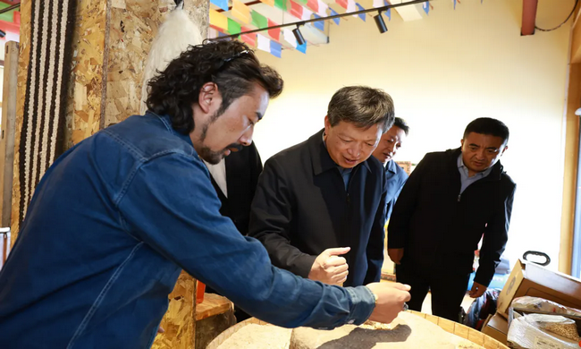在玉树市文化旅游体育投资有限公司,马锐先后来到舞蹈歌曲排练室、特色产品电商区,与工作人员交流探讨。他强调,要优化产品品位,合理定价,增强品牌影响力。推动更多农牧民参与到文化旅游服务、产品加工、文艺展演等环节中来,带动群众持续增收。