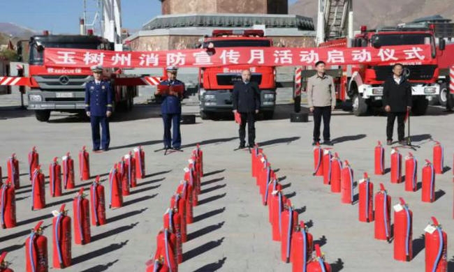 11月4日,以“全民消防生命至上——安全用火用电”为主题的消防宣传月活动在玉树市格萨尔广场启动。州委常委、常务副州长郭启龙出席并致辞。州消防安全委员会成员单位、消防安全重点单位、优秀消防志愿者、新闻媒体等社会各界代表共600余人参加。
