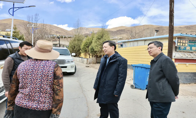 在玉树市新寨街道代格村,马锐一行走进村中,与村民亲切交谈,详细询问中央一号文件宣讲、驻村干部值班值守、帮扶举措落实等情况。