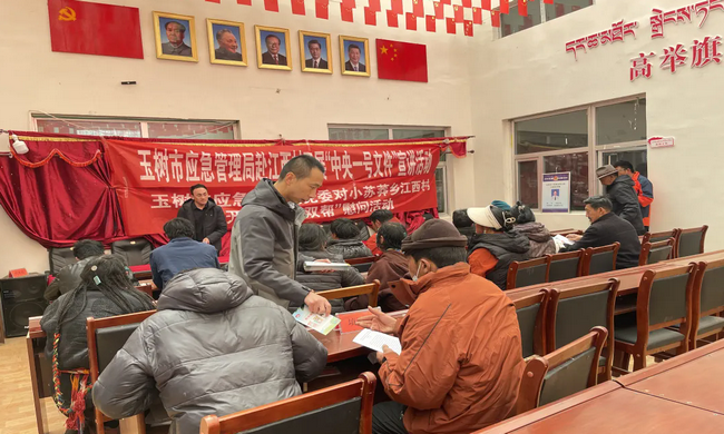 宣讲过程中,党员江旺更尕立足应急管理工作职能,结合农村生产生活实际,向村民普及安全生产、防灾减灾相关知识,重点讲解农牧区用火用电安全、自然灾害防范应对、应急避险技巧等内容,现场发放藏汉双语宣传册30余份,切实提升村民的安全防范意识和应急处置能力。